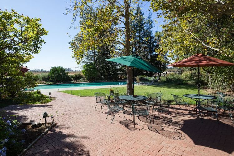 Nothing says relaxation more than sitting under a shady umbrella on a sunny poolside patio.